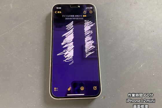 【iPhone12mini 修理】水没して画面の一部がタッチ操作できない。濡れたままだと不具合を起こすので水没した時はしっかり乾燥させることがポイントです!!