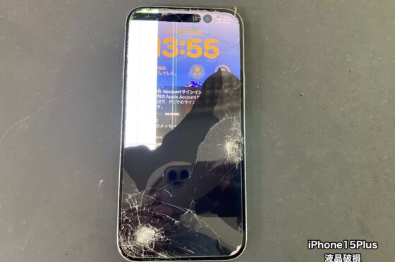 【iPhone15Plus 修理】車で轢いてしまった…バックアップを取れるまでの最低限の修理します!!ご相談はスマホスピタル八王子店まで!!