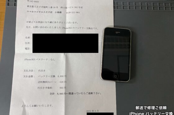 【iPhone 3GS 修理】バッテリー交換できます!!ご来店難しい方はスマホスピタル八王子店へ郵送修理でご依頼ください!!!
