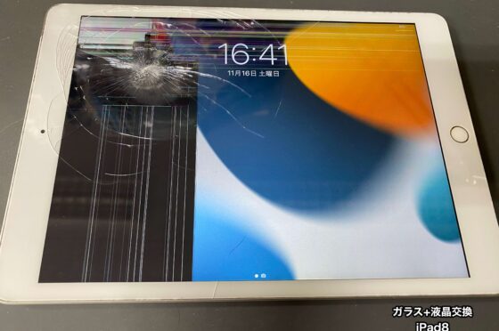 【iPad8 修理】液晶画面もガラス画面も割れっちゃった…180分のお預かりで即日修理対応できます!!