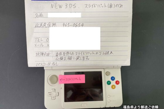【New3DS 郵送修理】スライドパッドのゴムの部分が壊れた!!くるくる操作がしづらいので交換修理で改善していく〜!!八王子店