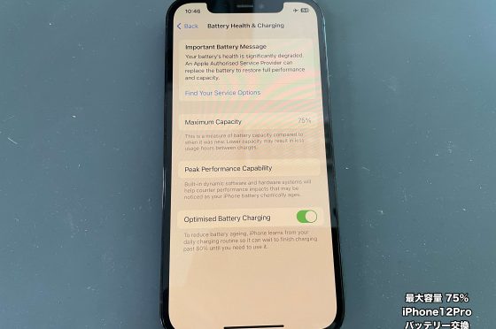 【iPhone12Pro 修理】 最大容量が75%まで下がってしまったiPhone12Proのバッテリー交換ご依頼!