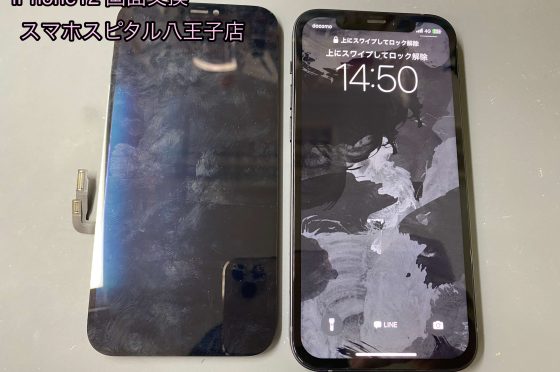 iPhone12のディスプレイやフレーム損傷!まとめてバッテリーも一緒に交換!