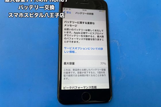 iPhone7過去一度も電池交換していない端末のバッテリー交換依頼!電池が劣化すると不具合が発生する可能性がある!?
