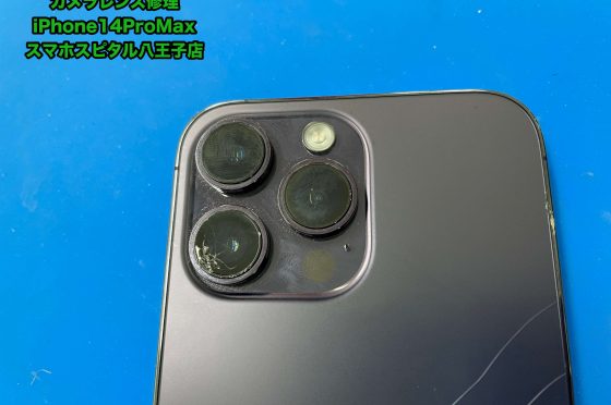 【iPhone 修理 八王子】 iPhone14ProMax、メインのカメラレンズ割れ! 修理時間60分 スマホスピタル八王子店