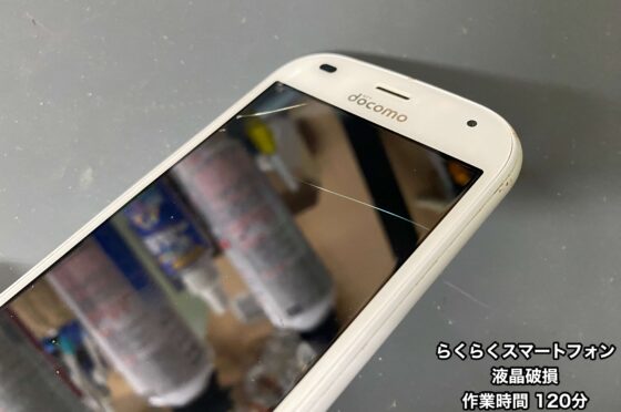 【らくらくスマートフォン(F-42A)修理】着信音は鳴るのに画面が映らない…よくみると画面にヒビが!?修理のご相談はスマホスピタル八王子店へ!!