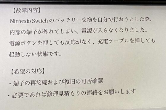 【Switch 修理】自己修理でバッテリーコネクターを破損させた…修理のご相談はスマホスピタル八王子店へ!!