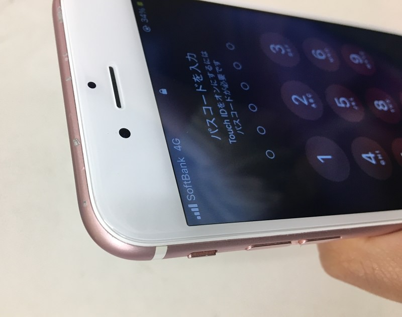 何ということでしょうiPhone7の画面右下のガラスが落下の衝撃により画面割れが発生し完全に剥離してしまっています。ですがこれだけではありません!