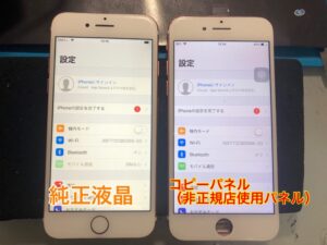 高品質液晶に似せて使っている互換性の液晶であるため、色合いが赤みがかかってり、青みがかかったりしまったり、ムラが出てしまうため、くすんだ色合いになりますし、明るさに関しては少し暗く見えてしまうので交換後は見え方が変わってしまいます。