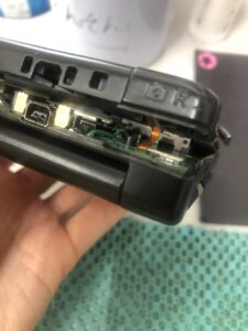 背面カバーを外すとき注意が必要なのはRボタンとLボタンのケーブルです。