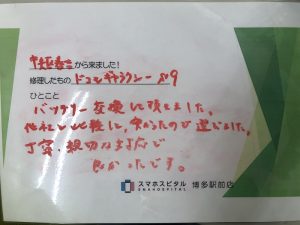 スマホスピタル マークイズ福岡ももち 【GalaxyS9バッテリー交換修理】丁寧、親切な対応で良かったです。