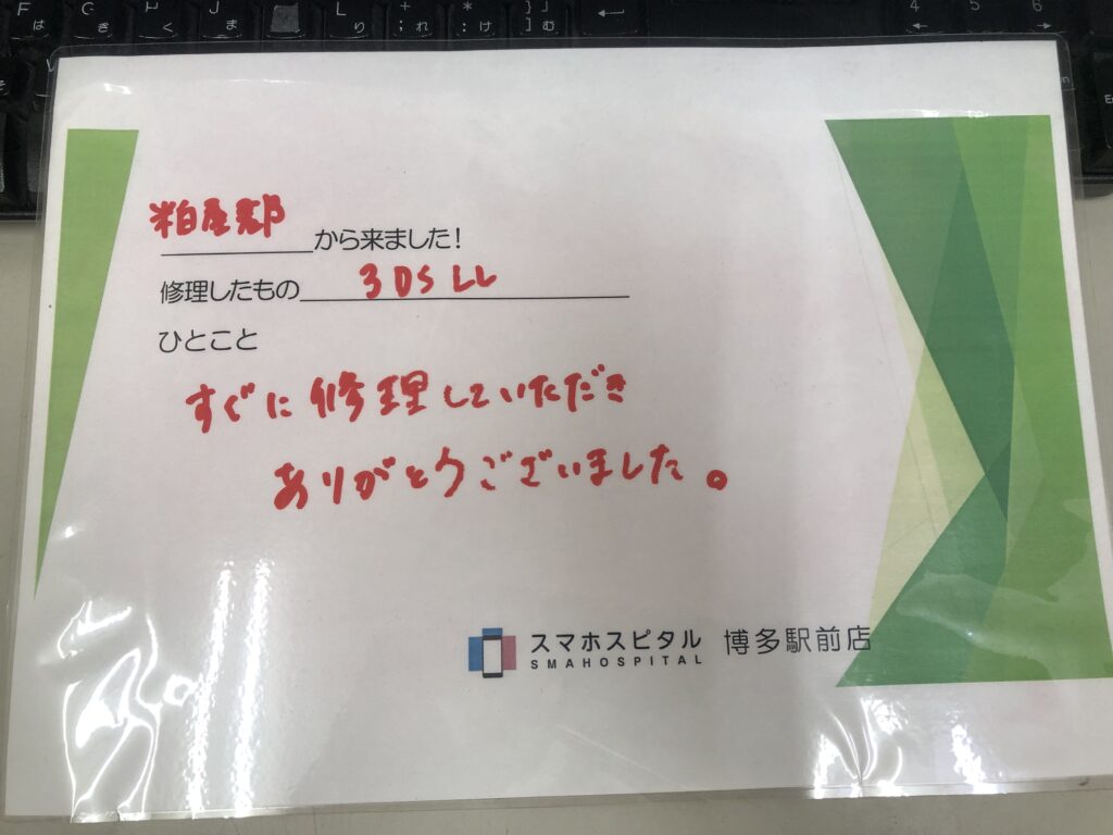 スマホスピタル マークイズ福岡ももち すぐに修理していただきありがとうございました。【3DSLL 画面交換】
