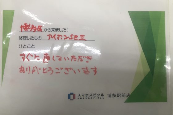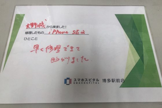 丁寧に対応してくださいました。【iPhone SE2 画面交換】