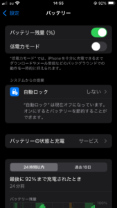 こちらですがバッテリーの項目を開いた時に状態と充電のところに出てくるものになります。