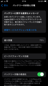 こちらの最大容量という部分の数値がバッテリーの劣化具合を示すバロメーターになります。
