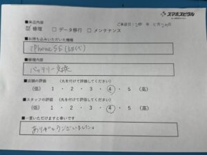 スマホスピタル 浜松 iPhoneSEのバッテリー交換のお客様からのお声をいただきました。