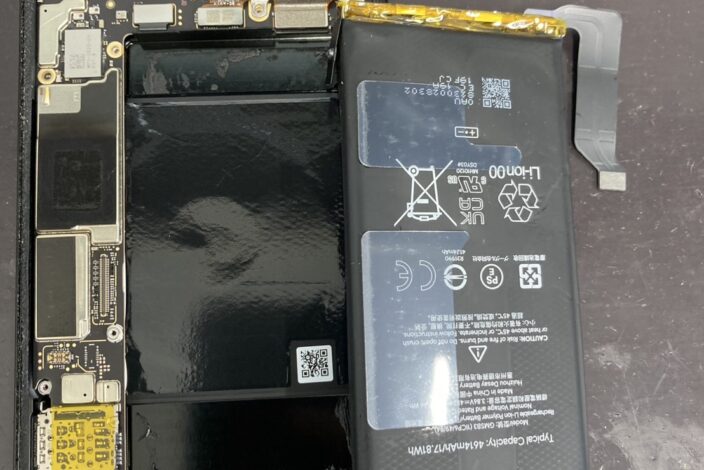 バッテリーが膨張しているため慎重に作業します
