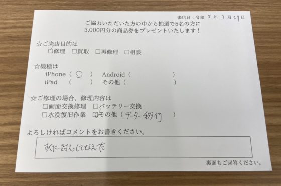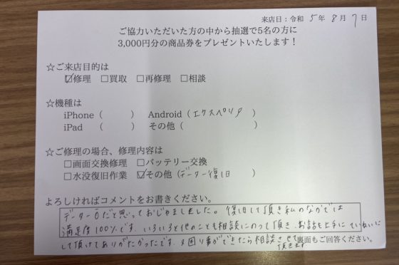 弊社の修理サービスをご利用いただいきましたお客様の声です。