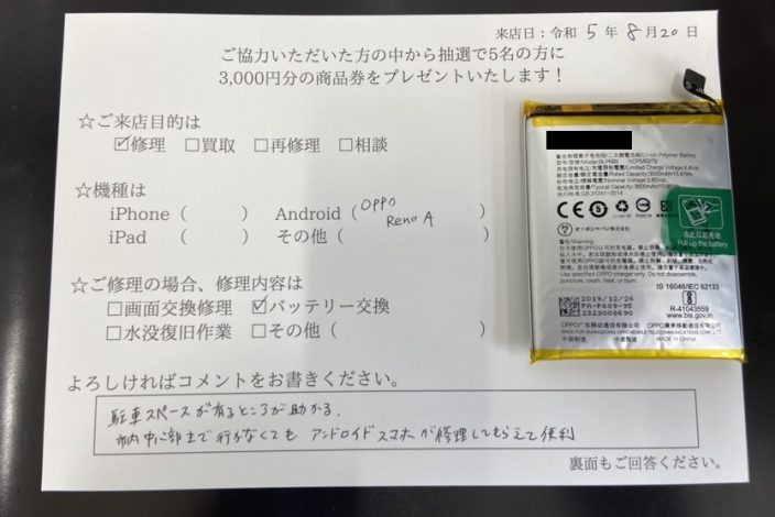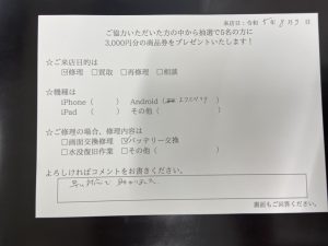 スマホスピタル平和が丘 Xperia X Performanceのバッテリー交換したお客様よりお声を頂きました。