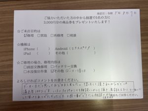 スマホスピタル平和が丘 Xperia 10Ⅱのシステム復旧&更新作業のご依頼をしたお客様よりお声を頂きました。