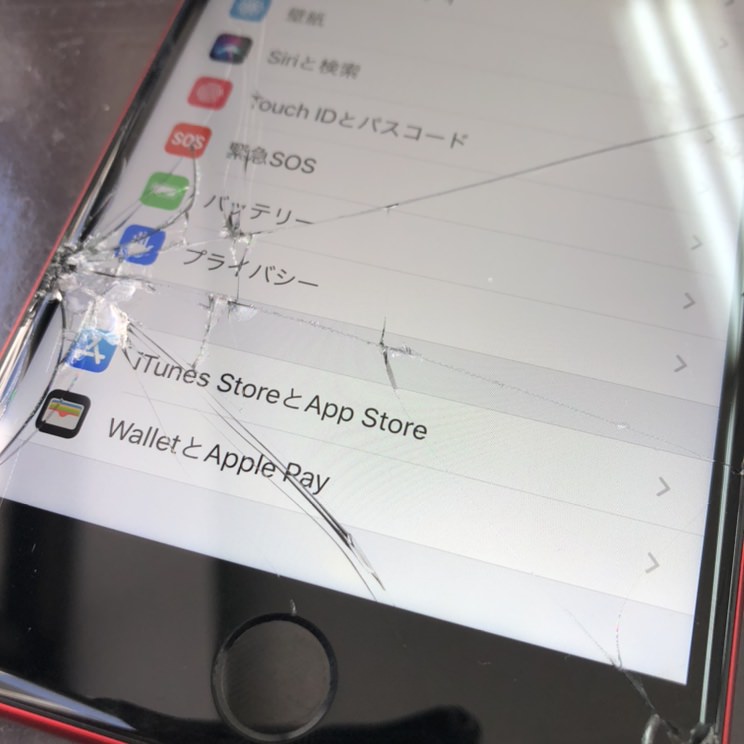 iPhone8の画面割れで蜘蛛の巣状にヒビ…