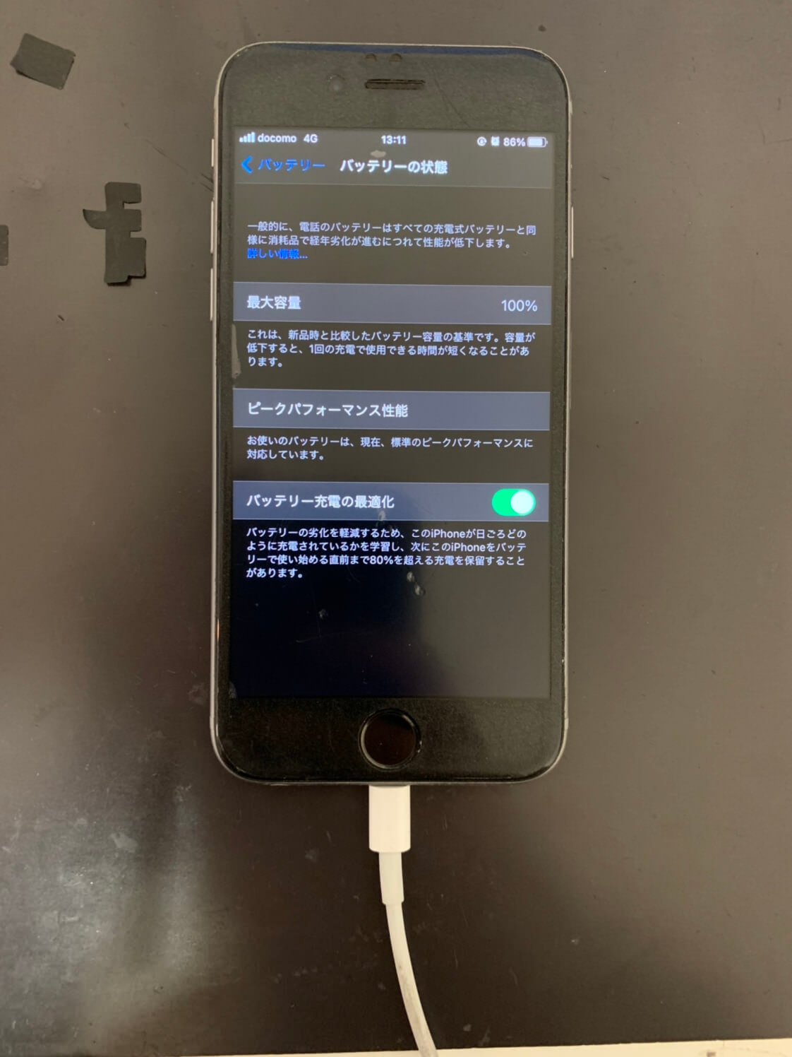 充電口(ドックコネクター)交換後はしっかりと充電ができるようになりました。