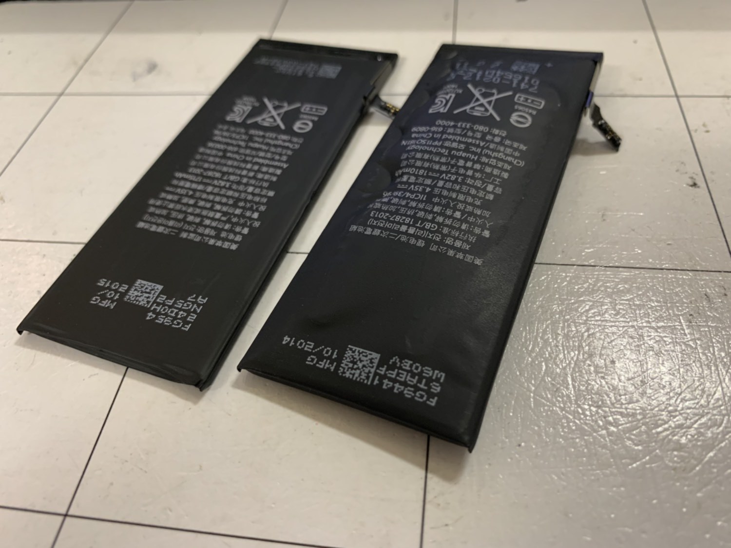下画像右側は、膨張したバッテリーです。