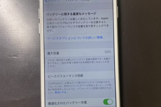【iPhone】バッテリーの最大容量が50%代まで低下!モバイルバッテリーで充電しながらじゃないと使用できない!