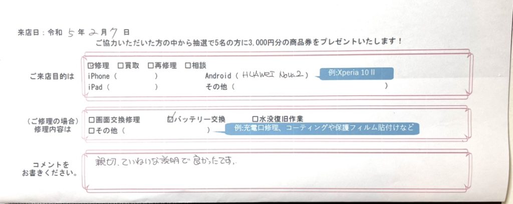 親切・ていねいな説明で良かったです。
