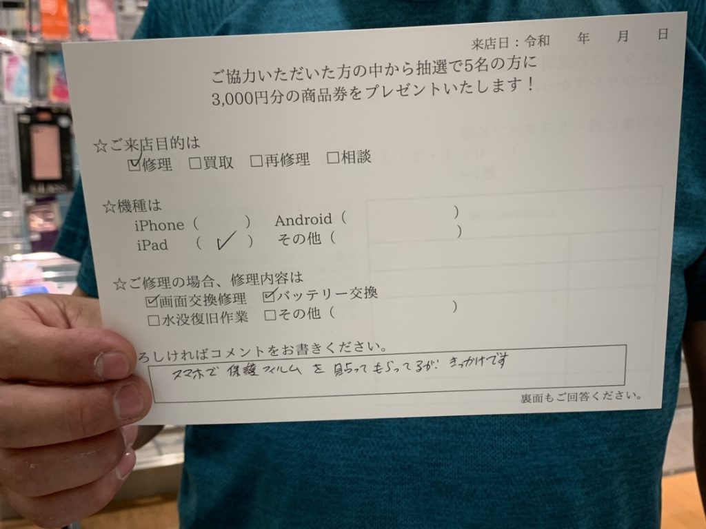 スマホで保護フィルムを貼ってもらってるが、きっかけです。