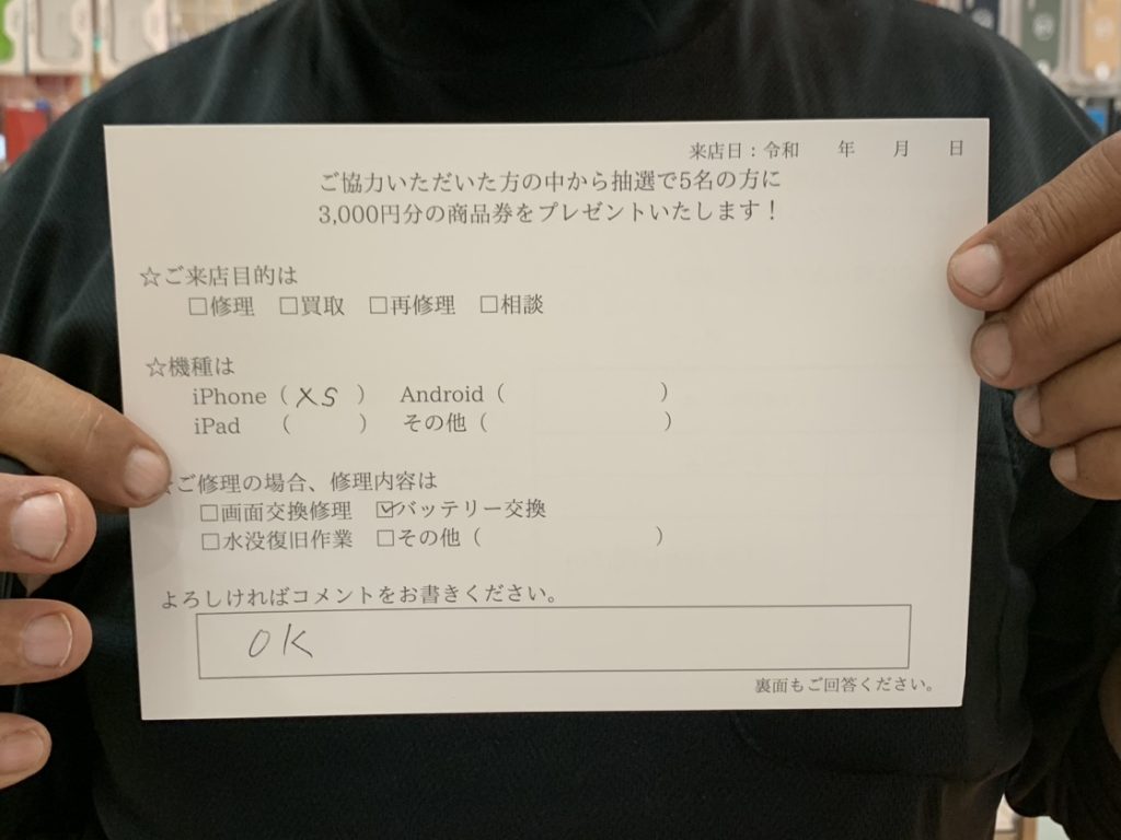 スマホスピタル姫路キャスパ iPhoneXs バッテリー交換修理