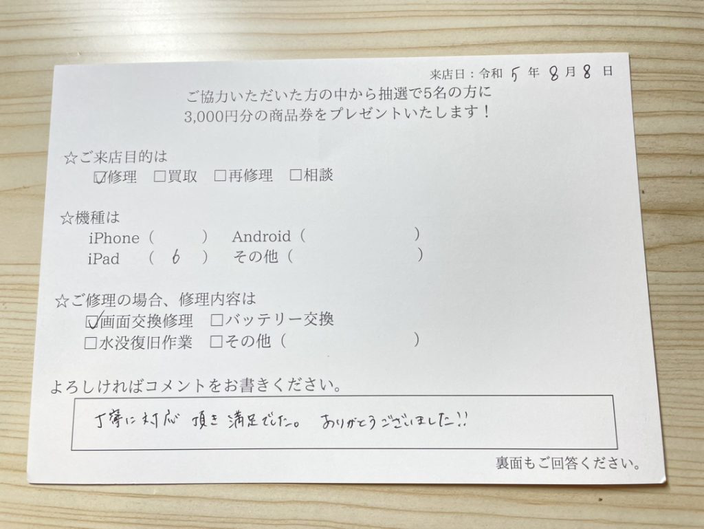 スマホスピタル姫路キャスパ iPad 6世代 ガラス交換修理
