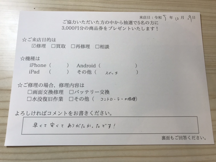 スマホスピタル姫路キャスパ Switchジョイコン アナログスティック修理