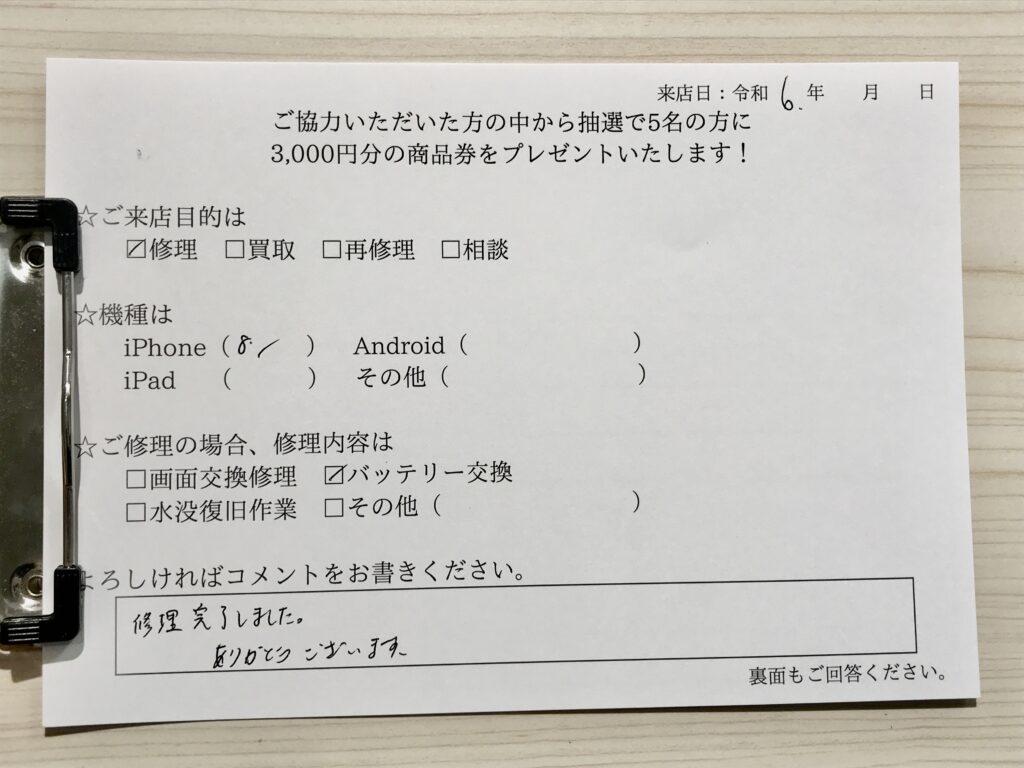 スマホスピタル姫路キャスパ iPhone8 バッテリー交換修理