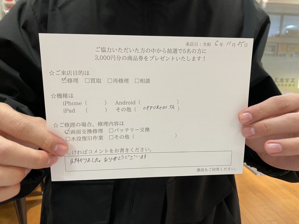 スマホスピタル姫路キャスパ OPPO Reno3A 画面交換修理