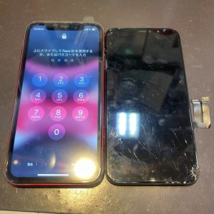 重度破損のiphone11ガラス・液晶交換修理/枚方市香里園