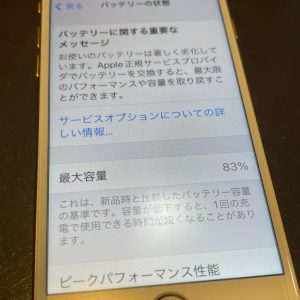 バッテリーの最大容量が83%まで下がっておりました!