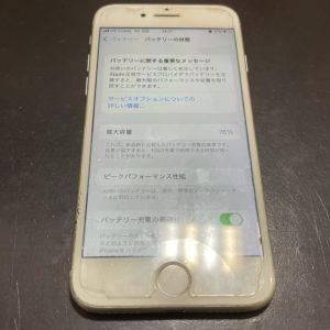 iPhone7の最大容量76%!!バッテリーの交換修理で100%に!!/枚方市北中振