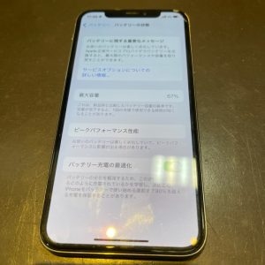今回67%まで劣化していたiPhoneXのバッテリーですが交換修理を行ったことで