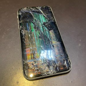 車に轢かれた画面バキバキiPhoneXR修理/枚方市香里園