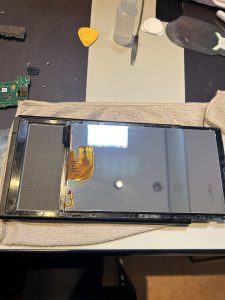 タッチパネルと液晶がくっついているのでスパチュラで分離させていきます。
