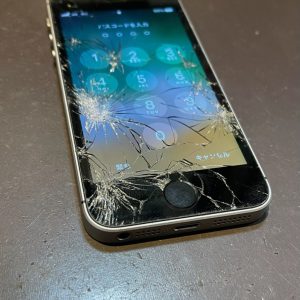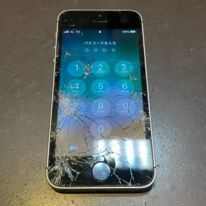 本日お持ち込みのお客様もiPhoneSEの画面がバキバキに割れてしまって