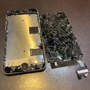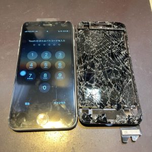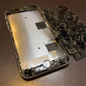 車に轢かれて画面が外れたiPhoneSE2画面交換修理/枚方市東中振