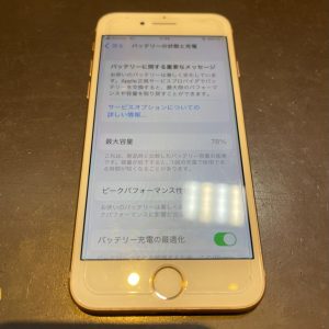 劣化したiPhone8バッテリー交換修理/交野市私部