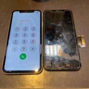 画面割れ&液晶漏れiPhoneXRフロントパネルは即日交換修理