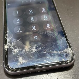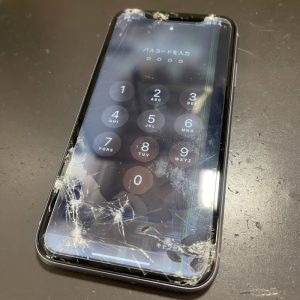 さて、今回お持ち込みのiPhone11も画面のガラスがバキバキに割れており