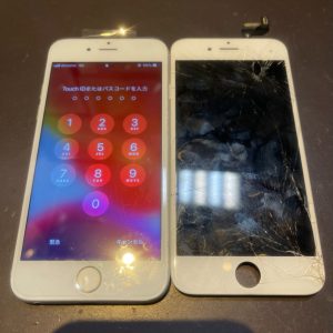 車に轢かれて画面バキバキiPhone6s画面交換修理/枚方市山之上