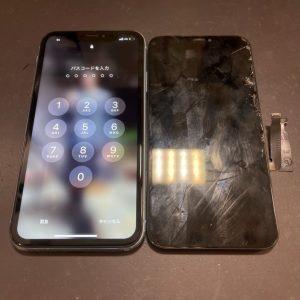 今回お持ち込みのiPhone11も画面が割れてしまった事による