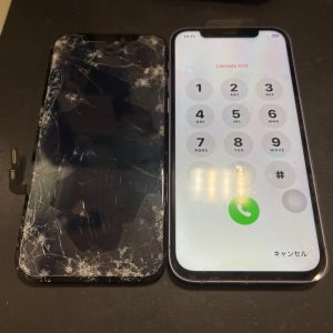 液晶不良になった画面バキバキiPhone12画面交換修理/交野市禁野