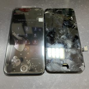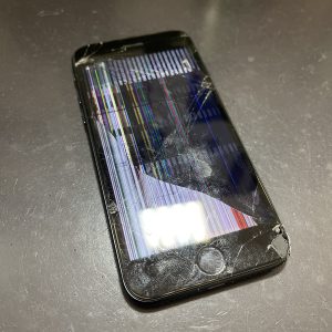 ガラス割れで液晶破損したiPhoneSE第3世代画面交換修理/枚方市出口